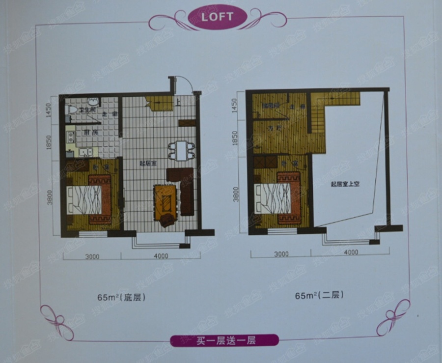 拜泉飞鹤御泉华府loft复式65㎡户型-2室2厅1卫